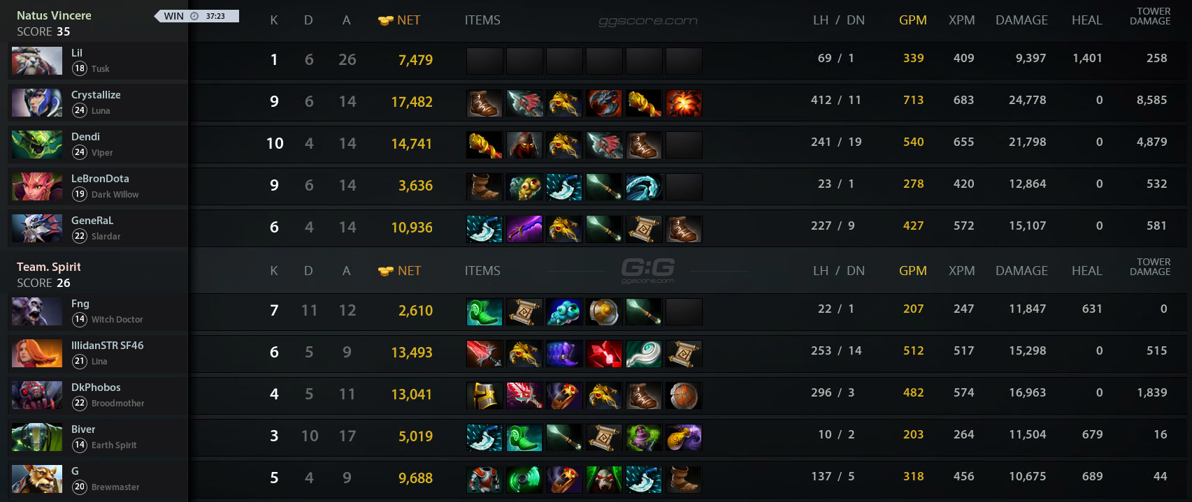 Увы, сразу после двух фрагов «жёлто-чёрные» не лучшим образом показали себя в драке на средней линии. В дальнейшем Рождённым Побеждать удавалось не только выходить в выгодные размены, но и разрушать внешние башни с помощью Necronomicon и «кабанов» Beastmaster. На 19 минуте завязался затяжной файт, в результате которого Team Spirit отыграли практически всё отставание.