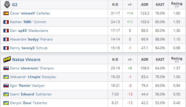 G2: наши парни были сильнее на de_mirage (16:13), а французы добились победы на de_cbble (9:16).
