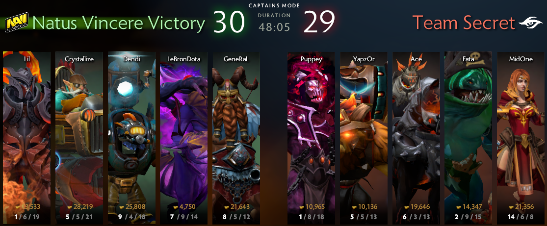 Natus Vincere, однако нашим ребятам удалось отправить в таверну сразу трёх персонажей. Отдельно необходимо отметить Tinker, который под управлением
