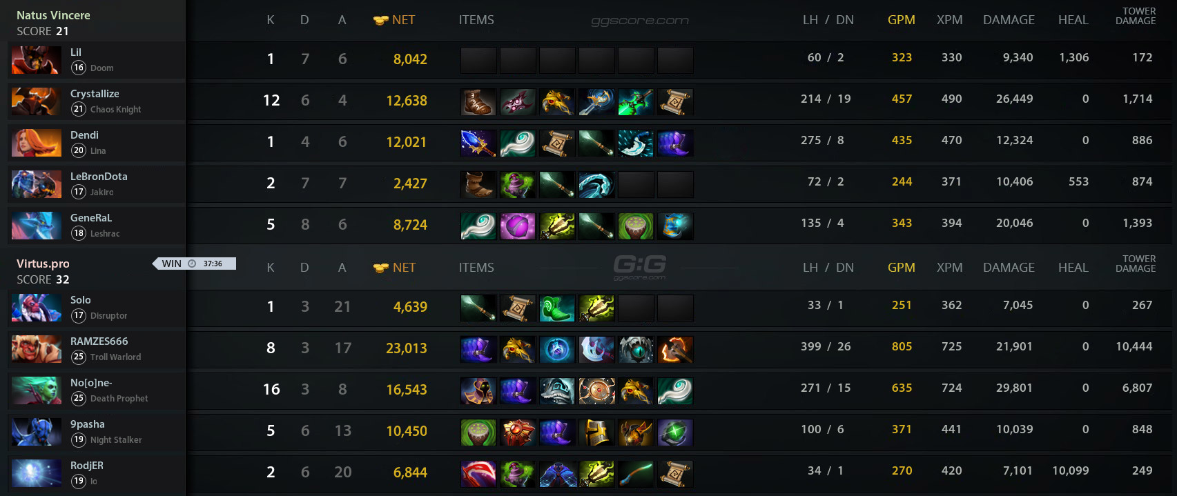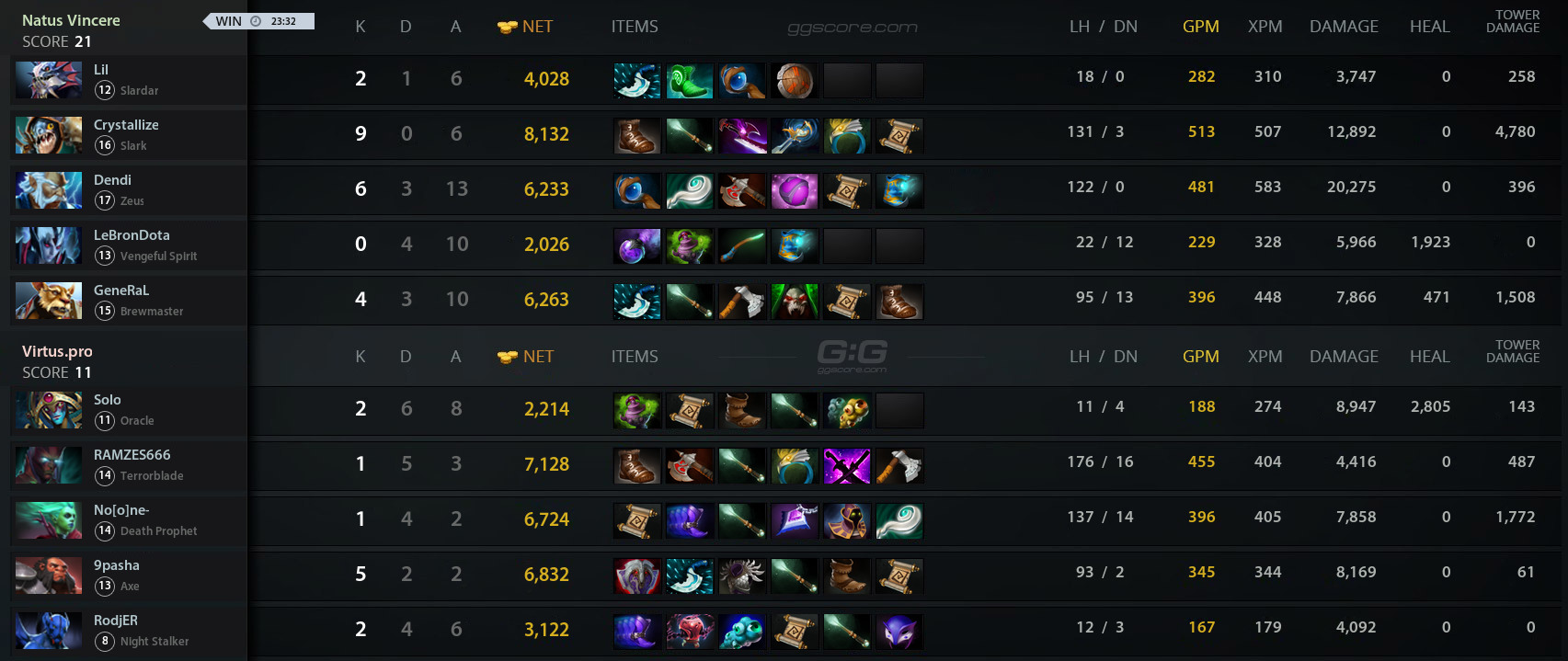 Рождённые Побеждать растягивали соперников по карте, методично нападая на внешние постройки. Virtus.pro, в свою очередь, потратили ультимейт Death Prophet на вышку первого круга и оказались в невыгодном положении в бою. Одолев противников, наши парни отправились за Эгидой Бессмертия — бонусную жизнь получил Slark.