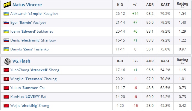 Чтобы рассчитывать на камбек за сторону защиты, китайскому коллективу необходимо было выигрывать либо пистолетный раунд, либо force buy: в первом же из них игроки VG.Flash справились со своей задачей. Из-за плохо проведенного антиэко (погибли трое игроков), проиграв оружейный раунд, контртеррористы получили сброс экономики.