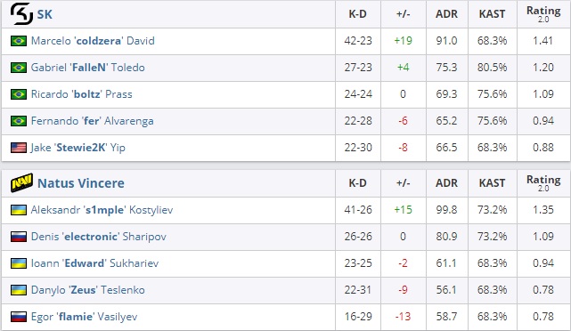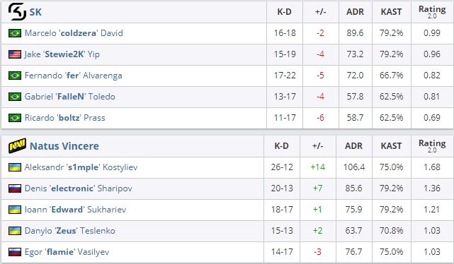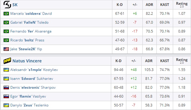 SK появилось три попытки, чтобы одержать победу на de_inferno, и бразильцы воспользовались второй из них. Итоговый результат – 22:19.