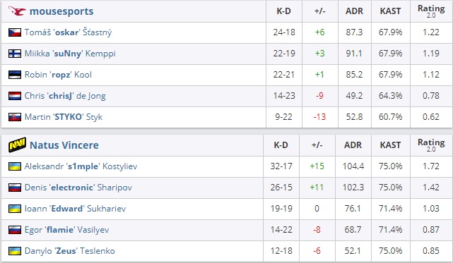mousesports. Одержав победу в оружейном, «мышки» практически гарантировали себе успех на de_inferno и в итоге обыграли