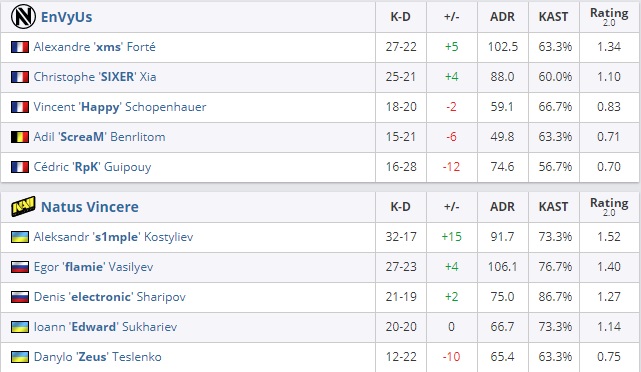 EnVyUs со счётом 2:0 и тем самым выходят в финал турнира, где встретятся с победителем пары
