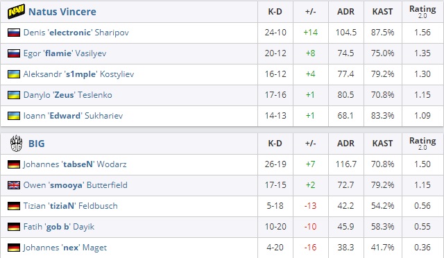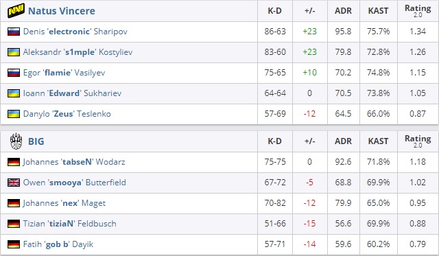 BIG выиграть полузакупку. В итоге первая половина встречи закончилась с минимальным преимуществом немецкой пятёрки – 8:7.