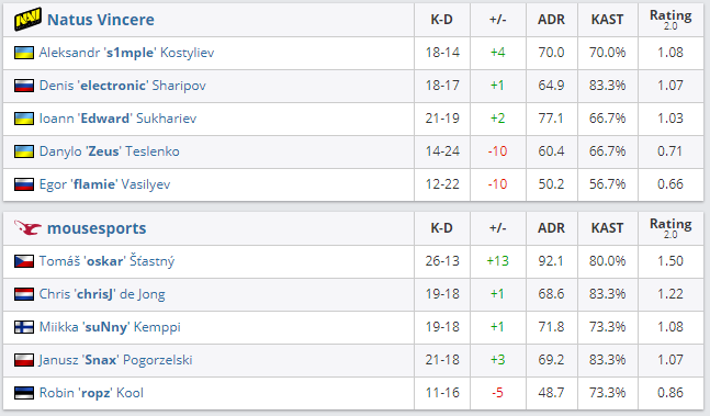 The quick trades of the pistol round resulted in NAVI taking the pistols in the second half, but the force buy went the way of mouz. We did not let them tie the game again, though, taking 2 in a row to put us 3 rounds above. mouz broke our streak again, as they propelled themselves into the double-digits, and towards another temporary tie - 11:11.