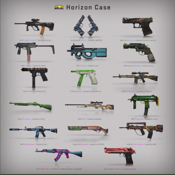 Добавлен Horizon case, включающий в себя 17 новых скинов сообщества и 4 вида новых ножей.