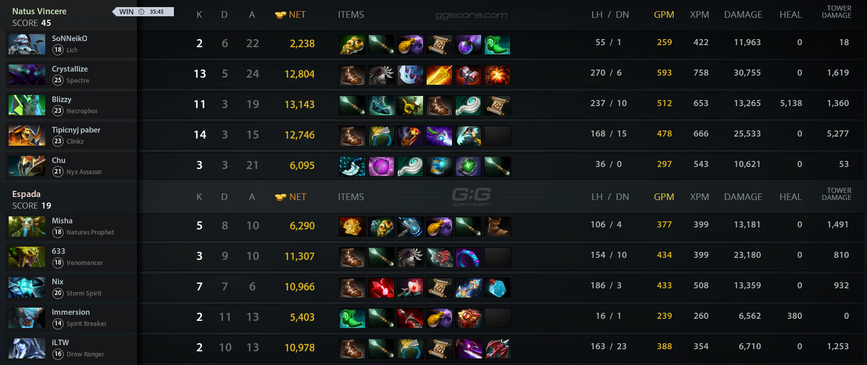 Espada не отказалась от идеи получить преимущество в виде дополнительной жизни: совершив два убийства, оппоненты получили численное преимущество и реализовали его, обеспечив своего кор-героя Эгидой Бессмертия.
