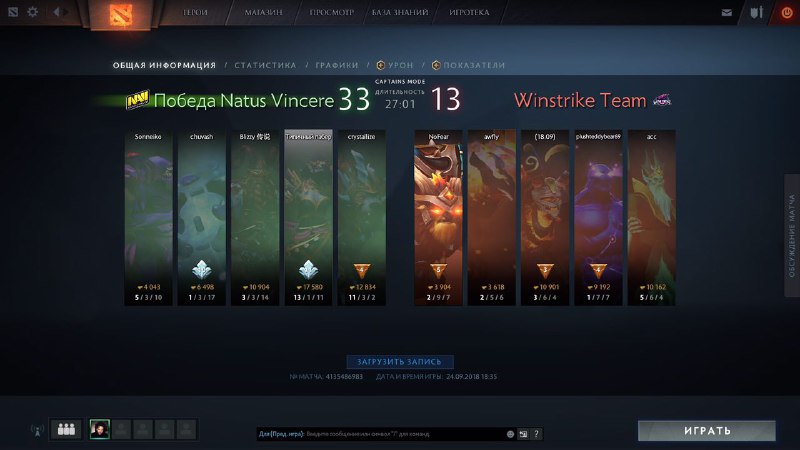 Успешно проведённая стадия лайнинга позволила трём кор-персонажам противника занять лидерские позиции в рейтинге ценности; из героев Рождённых Побеждать на верхних строчках держалась Broodmother, фармившая не только на средней линии, но и во вражеском лесу.