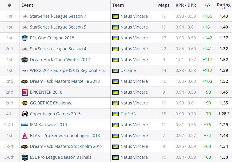Natus Vincere побил личный рекорд по разнице убийств и смертей за турнир! На StarSeries S7 этот показатель у Саши составил + 166, а предыдущий лучший результат