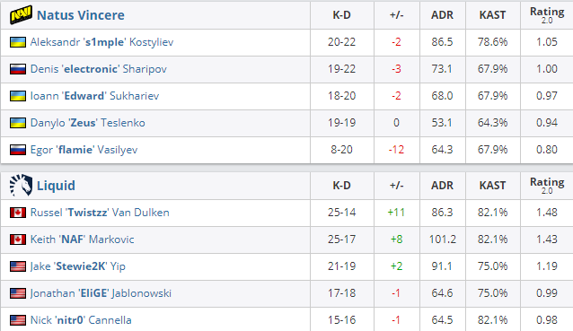 Team Liquid (14 : 16 — Overpass). Как известно, ветирование карт состоялось задолго до турнира, поэтому игровые карты каждого поединка определены: матч с
