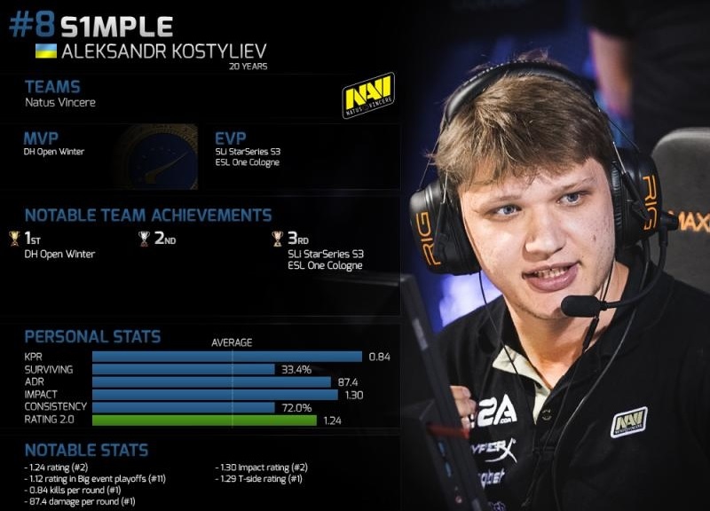 s1mple занял восьмое место в рейтинге HLTV.org