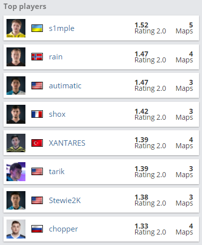 Александр «s1mple» Костылев от турнира к турниру показывает стабильный уровень игры — он всегда готов к сражениям и выступает на LAN-чемпионатах в отличной форме. Выступление Александра в рамках основной квалификации не стало исключением — согласно данным HLTV.org, он является лидером рейтинга 2.0!
