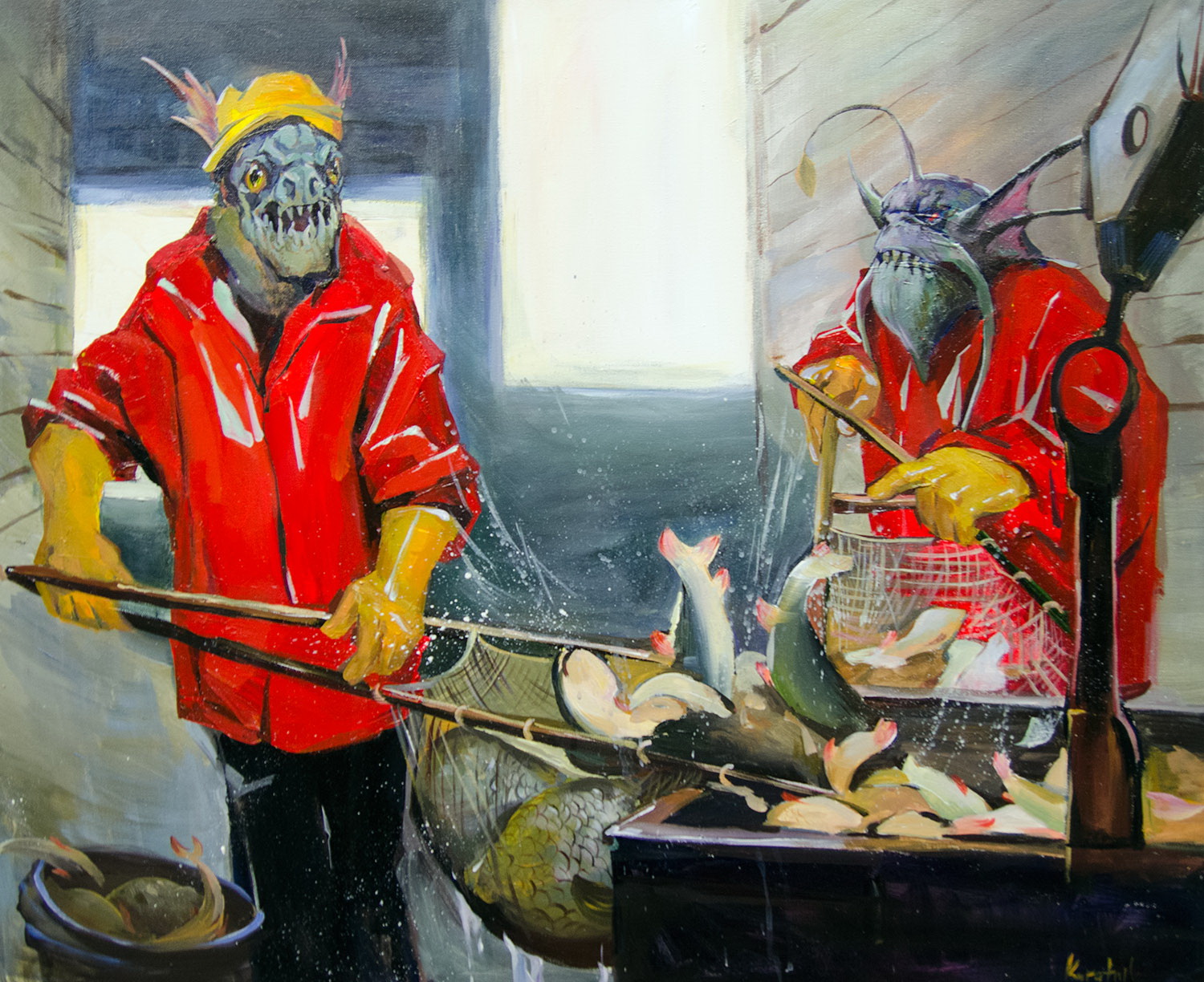 Героями одной из картин стали крайне опасные обитатели морских глубин. Именно