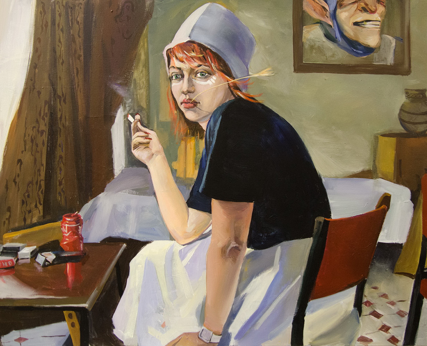 Героя, изображённого на следующей картине, с первого взгляда и не узнать. Только как следует присмотревшись, можно угадать в этой разбитой и лишённой изящества девушке горячую и самоуверенную