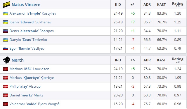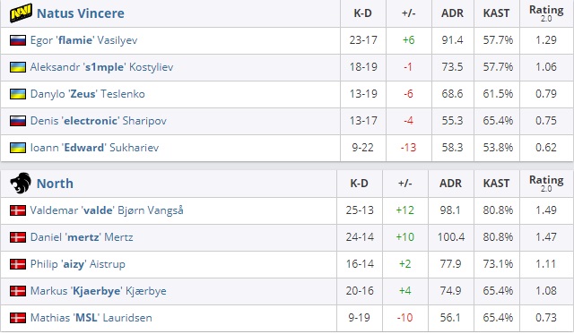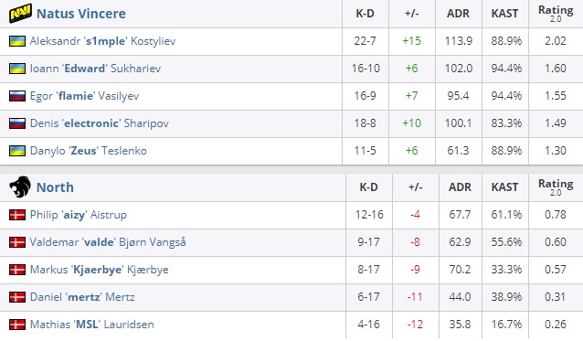 North. Оружейный раунд стал отправной точкой для Рождённых Побеждать по возвращению в эту игру. Однако отыграть более трёх очков нашей команде не удалось после успешно проведённого оружейного раунда. Впоследствии датчане сумели заполучить в своё распоряжение 6 матч-пойнтов и реализовать второй. Таким образом,