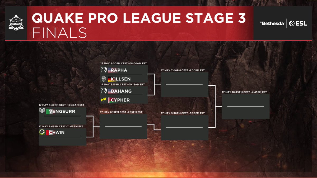 cYpheR, так как на турнире остались лучшие игроки третьей стадии Quake Pro League. Но мы уверены, что Алексей как следует подготовился к испытанию и покажет первоклассную стрельбу! #navination