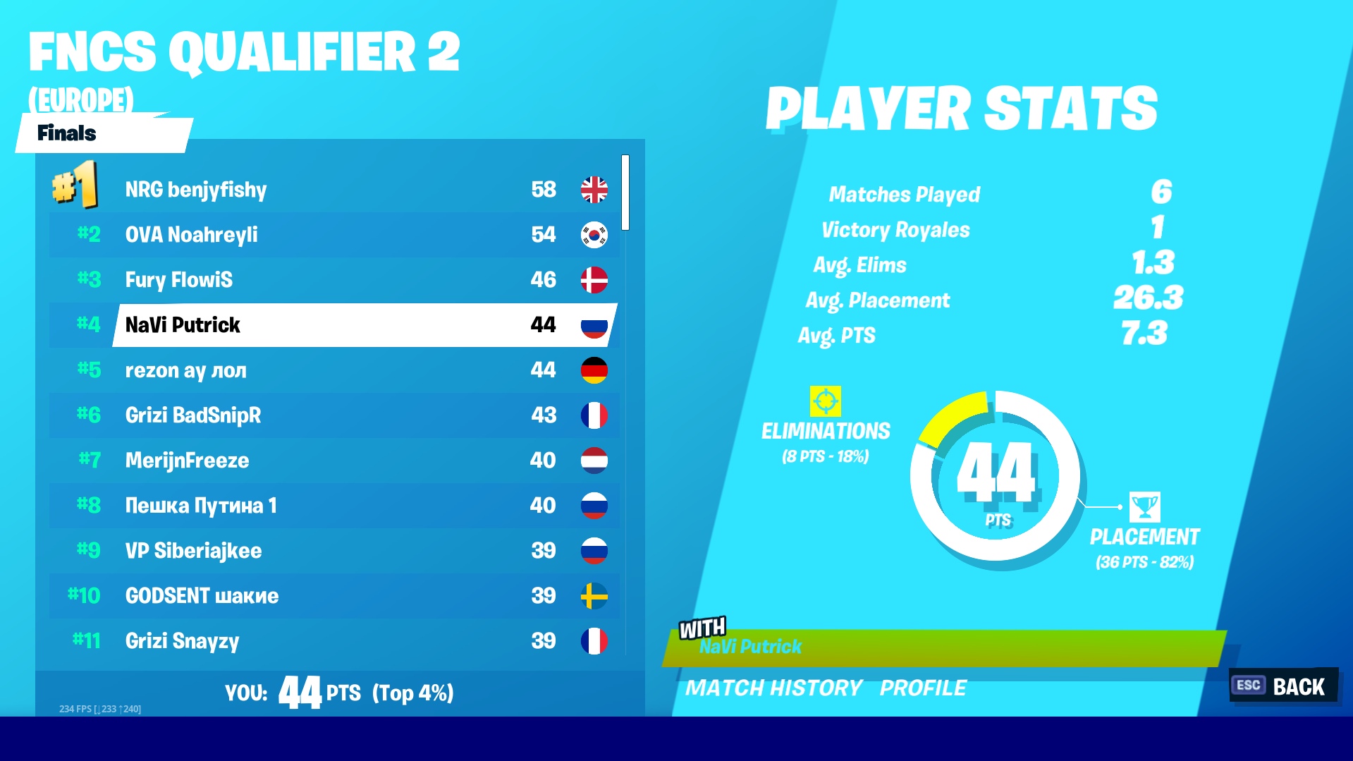 Даниил «Putrick» Абдрахманов завоевал слот в полуфинале турнира Solo FNCS. Во квалификации он преодолел все три раунда отборочных матчей.