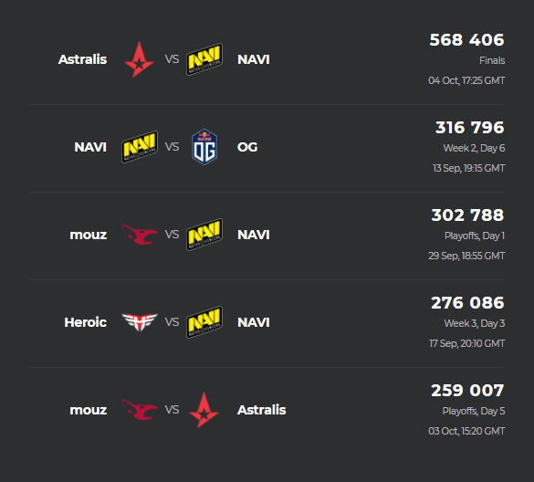 Матч с участием Natus Vincere — самый просматриваемый на турнире!