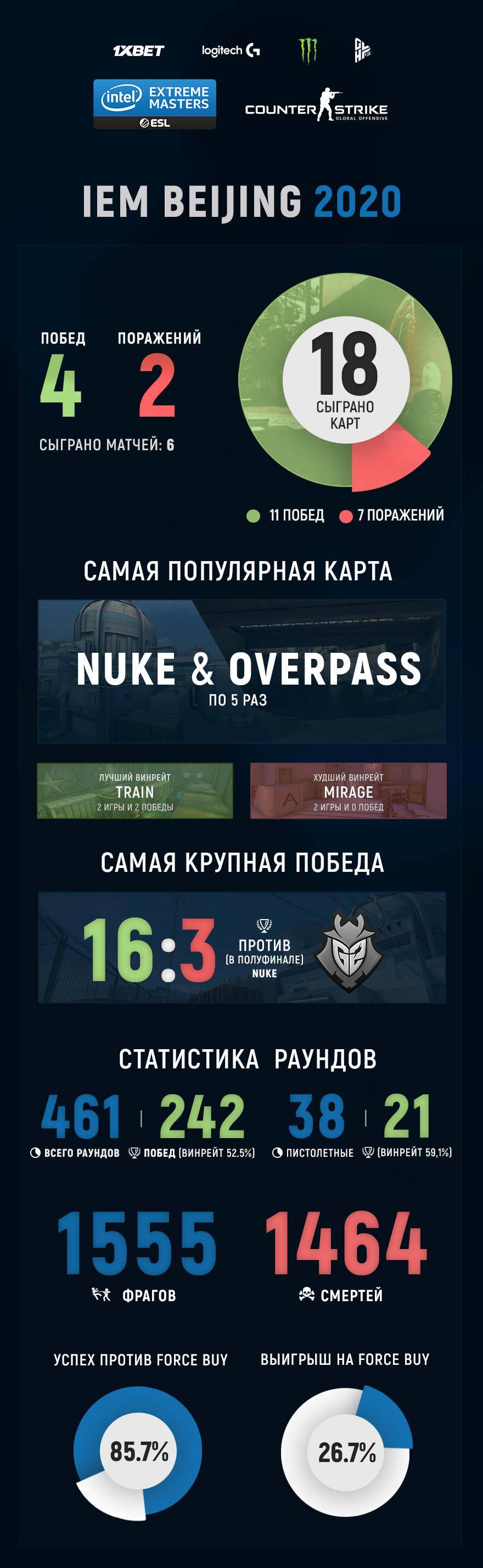 NAVI, а также любопытные данные о том, как команда играла на различных картах и насколько успешны были наши ребята в пистолетных раундах.