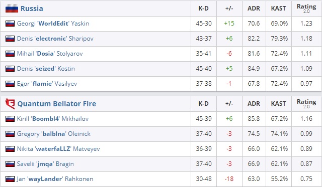 Статистика игроков .Russia и QBF по итогам финальной встречи