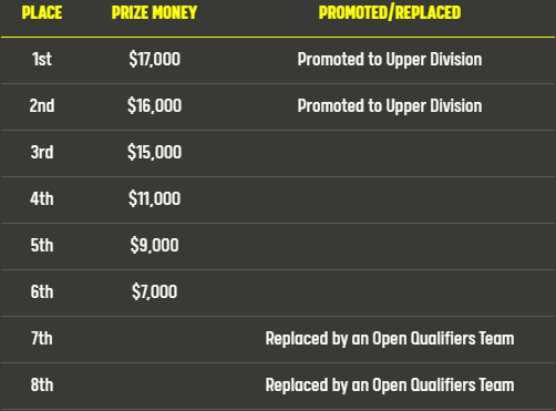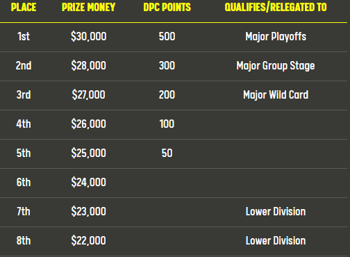 По итогам регионального сезона три лучшие команды СНГ получат места на международном Major-чемпионате. Два худших коллектива верхнего дивизиона отправятся в нижний дивизион, а их места займут два лучших участника нижнего дивизиона.