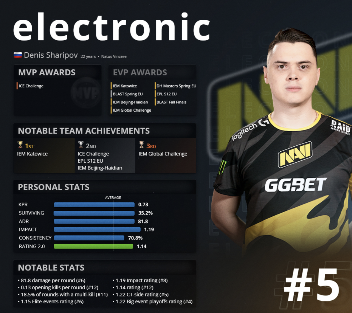 Electronic — пятый в рейтинге HLTV.org 2020