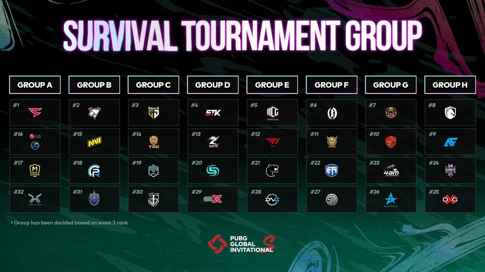 В четвертьфинал пройдут восемь команд, там они разделятся на две группы. Путёвку в гранд-финал Survival Tournament получат две команды из каждой группы четвертьфинала.