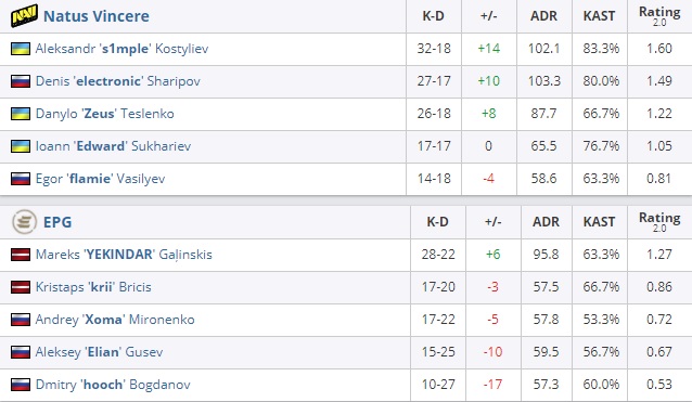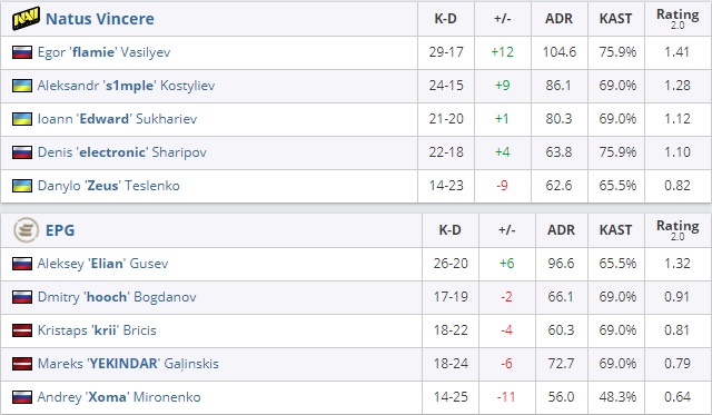 EPG выиграли force buy, но закрепить свой успех не смогли. В дальнейшем российская пятёрка заработала ещё два очка в атаке, проиграв первую половины карты de_nuke – 4:11.