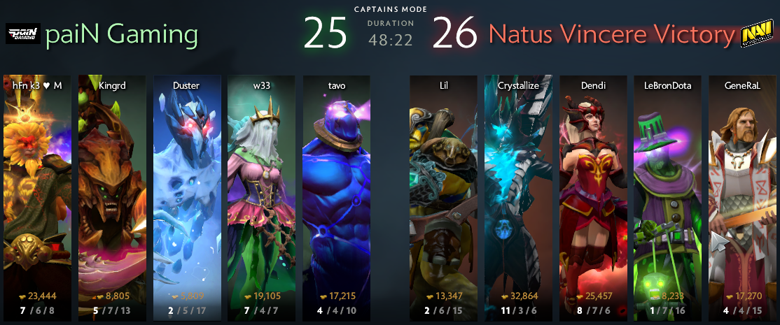 paiN Gaming. Однако в результате были уничтожены абсолютно все герои бразильской команды, а «жёлто-чёрные» нивелировали разницу в золоте до нуля и взяли в арсенал Terrorblade Aegis. Правда, от последующей осады в исполнении нашего коллектива противник всё же сумел отбиться.
