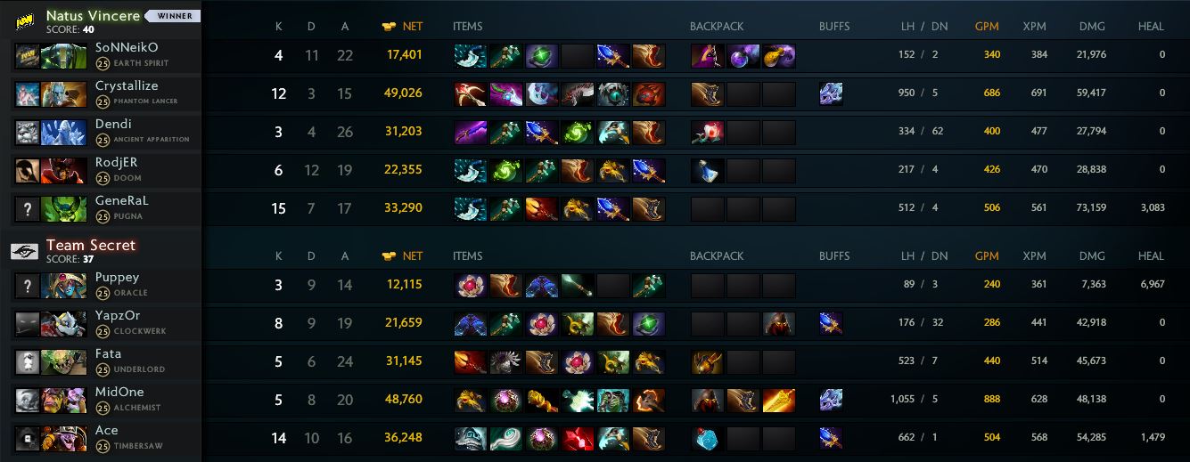 Team Secret не приносила положительных результатов, а «жёлто-чёрные», напротив, выигрывали лобовые столкновения. В одном из файтов