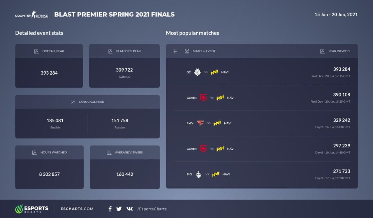 Матчи с участием NAVI — cамые популярные на BLAST Premier: Spring Finals 2021