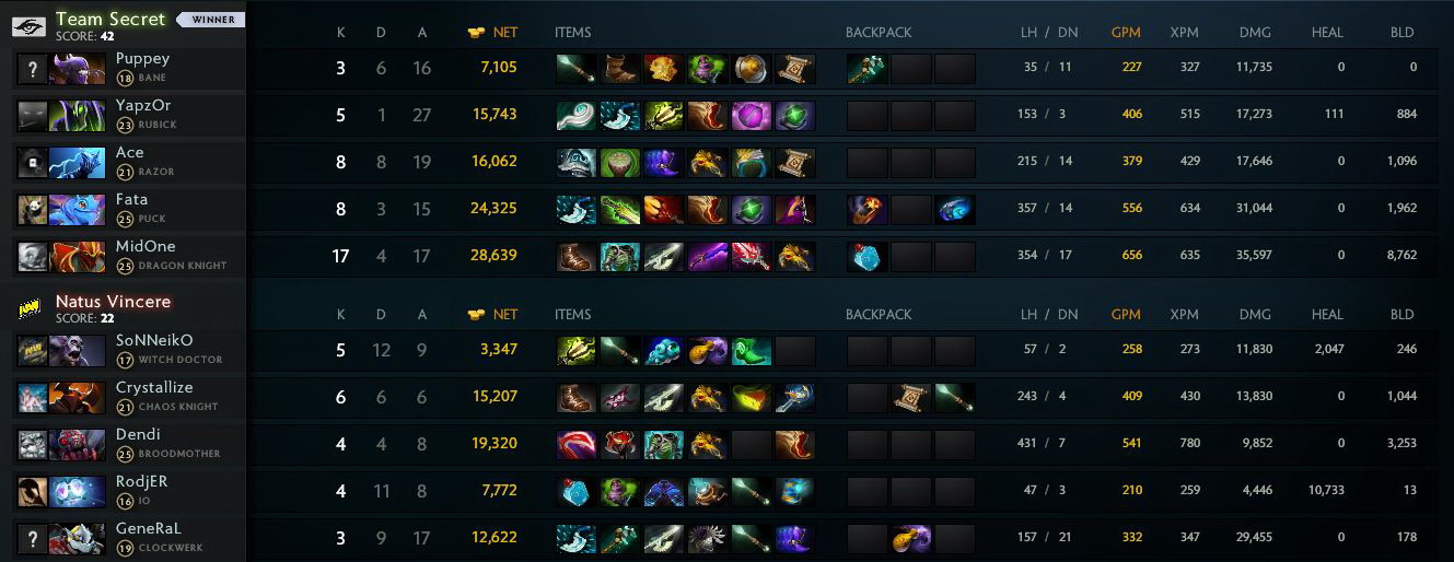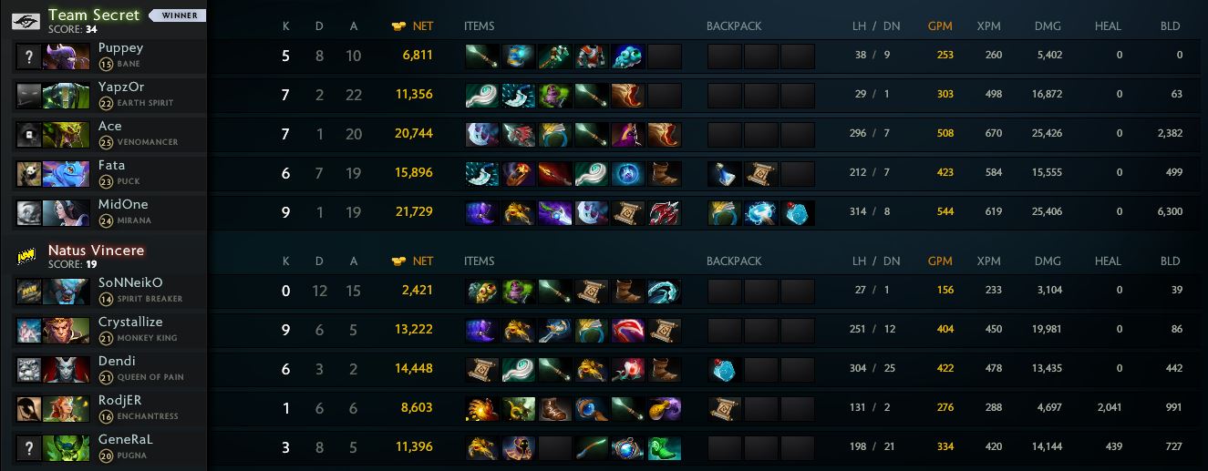 Team Secret дал о себе знать — «жёлто-чёрные» не смогли одержать верх в сражении и были вынуждены использовать выкупы, чтобы сохранить постройки. Перегруппировавшись, коллектив под началом