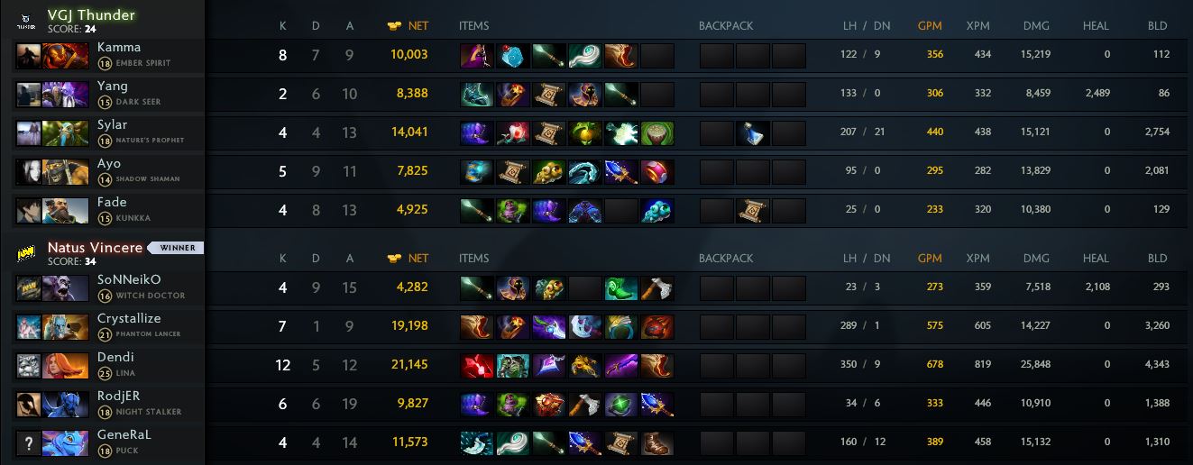 Natus Vincere, в свою очередь, сумели вернуться в игру, одержав победу в битве за Рошана: отправив в таверну 4 персонажей, наши парни не потеряли ни одного. Тем не менее Эгида так никому и не досталась. Последовала серия взаимных разменов, которые были только на руку нашей команде. Только после этого Рождённые Побеждать разделались с Рошаном.