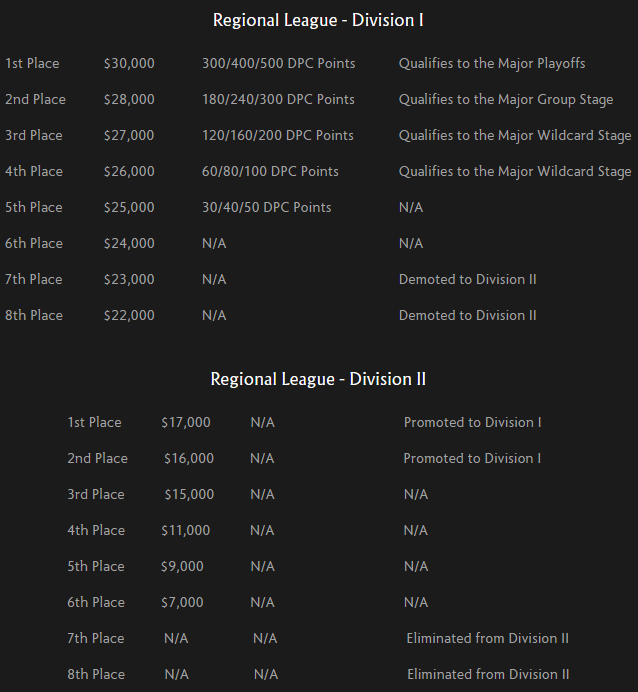В предстоящем сезоне количество разыгрываемых очков Dota Pro Circuit будет увеличиваться с каждым этапом. Во всех региональных лигах будет разыграно по 690 очков на первом этапе, по 920 — на втором и по 1150 — на третьем. Major-турниры, в свою очередь, оценены в 1900 очков, 2700 и 3500.