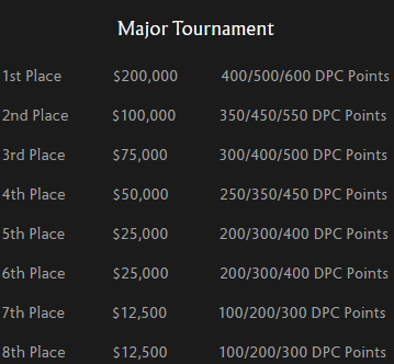 Распределение призовых фондов и очков Dota Pto Circuit