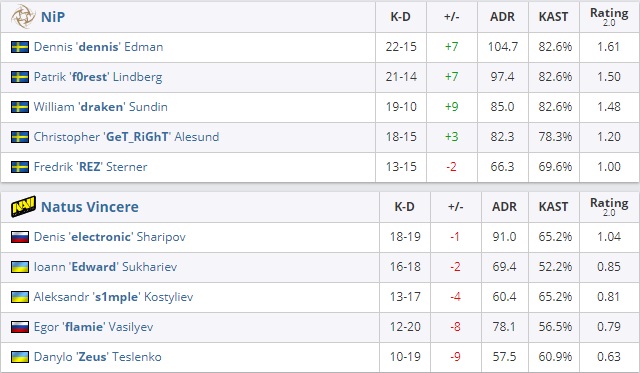 NiP на de_overpass (12:16) и de_inferno (7:16).