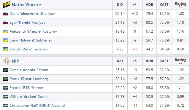 Natus Vincere ничего не сумели противопоставить шведам в защите и тем самым потерпели поражение в первой половине встречи со счётом 1:14.